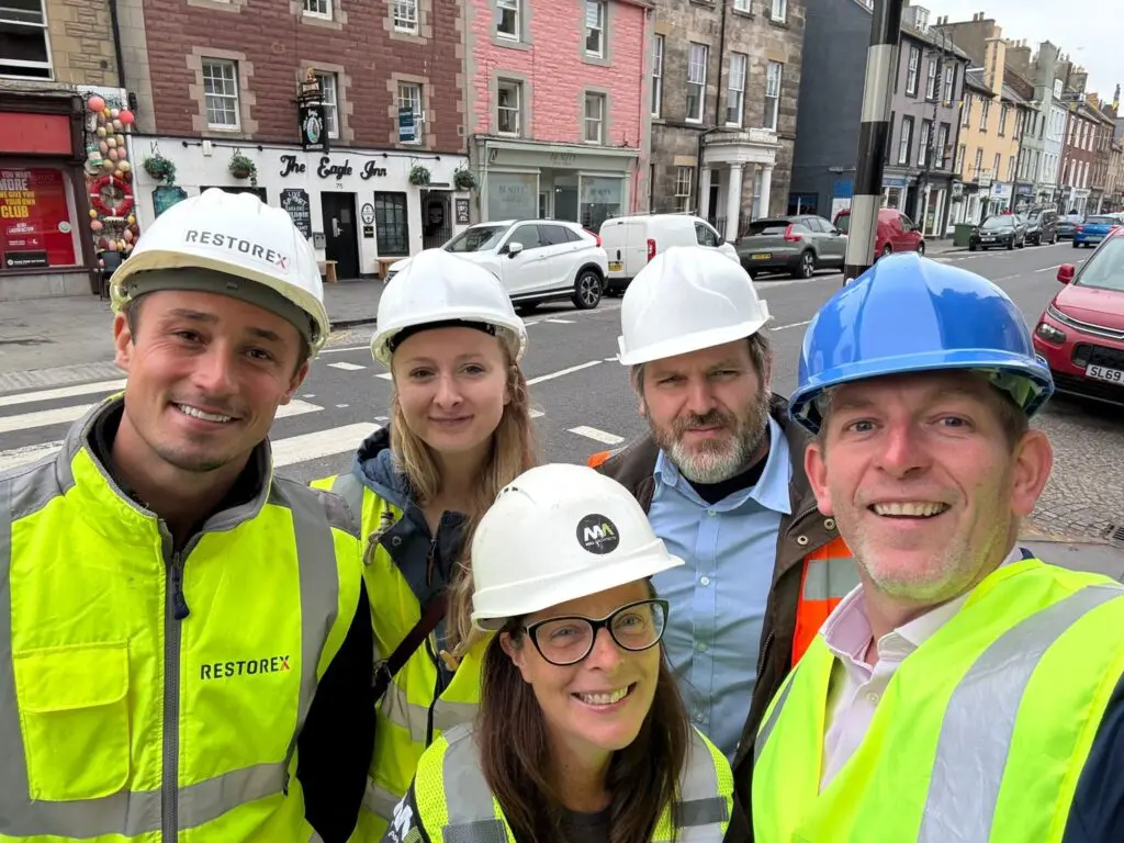 The Chief Executive of East Lothian Council (ELC) made a visit to Dunbar’s High Street to view progress on an ongoing heritage-led regeneration project under the Dunbar Conservation Area Regeneration Scheme (CARS). The visit included meetings with Council staff overseeing the initiative, as well as contractors actively engaged in restoration works.